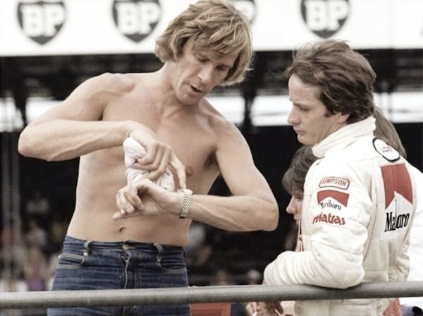 - Gilles Villeneuve en pleine réflexion d’avant-course. A son poignet, un chronographe Tag Heuer à quartz.